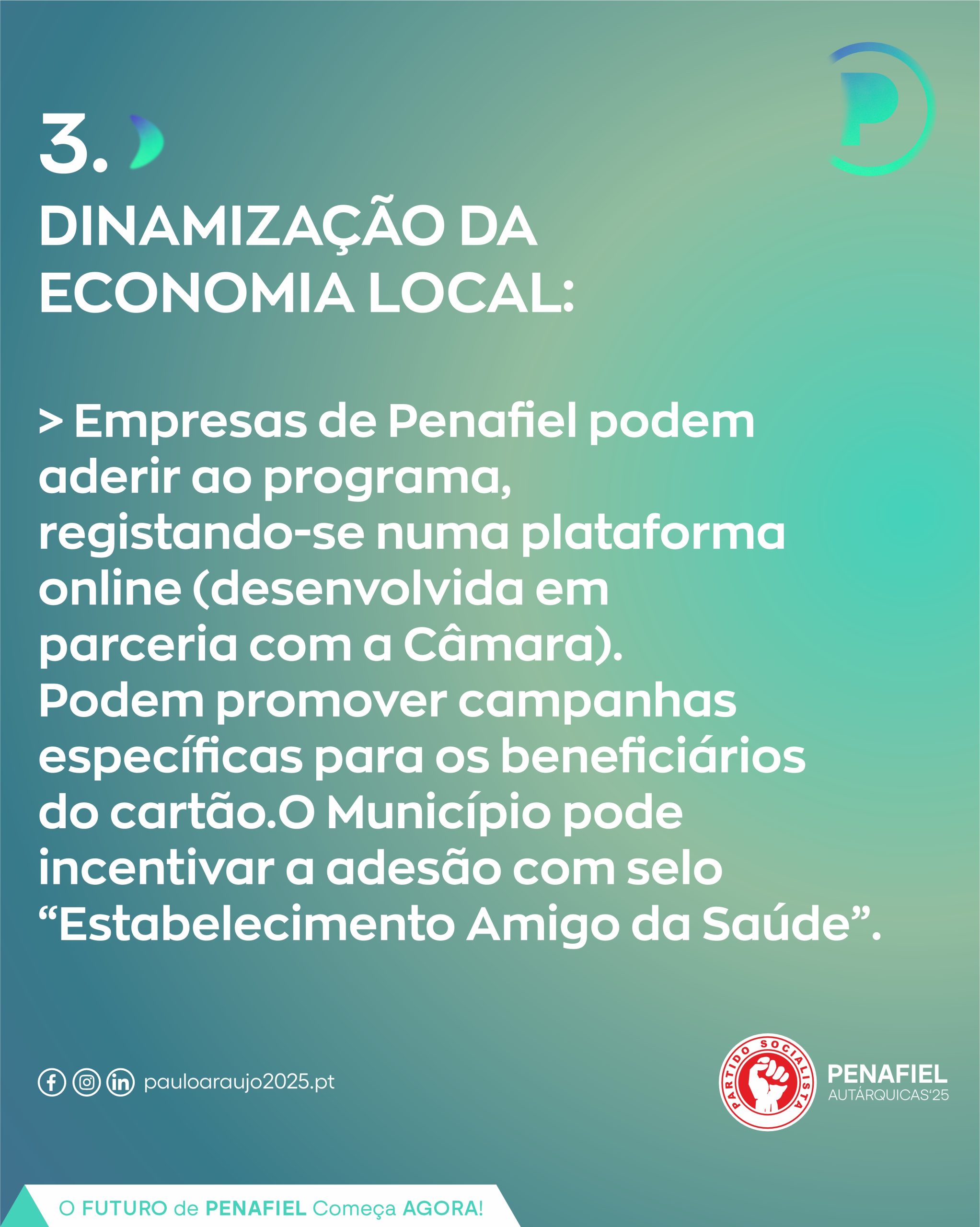 Dirijo-me a vós com a mesma paixão, o mesmo compromisso e o mesmo entusiasmo que me trouxeram aqui há quatro anos. Mas agora, venho com algo ainda mais forte: a certeza de que juntos podemos fazer mais e melhor por Penafiel.